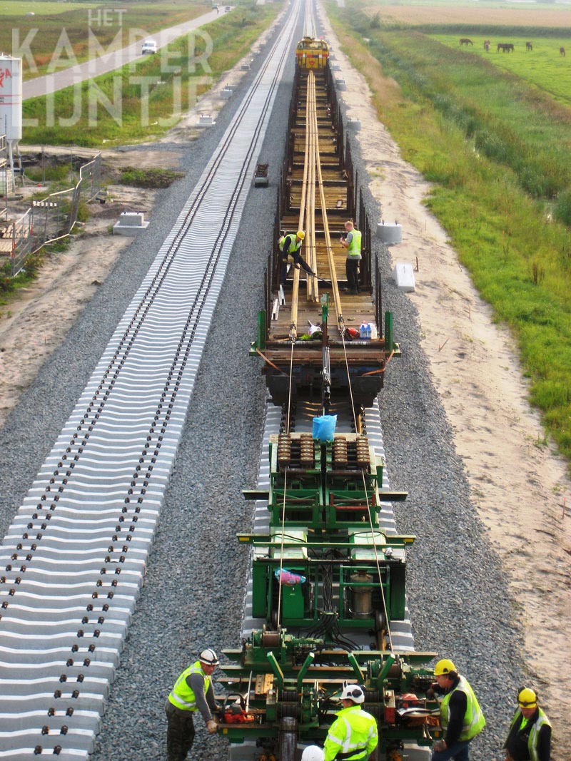 Totaal is er 3,5 miljoen zand aangevoerd, afkomstig uit het IJsselmeer onder de vaargeul Amsterdam – Lemmer. Op het Nieuwe Land (polder) werd het zand vanuit de schepen met persleidingen naar de plaats van bestemming gepompt en op het Oude Land met schepen naar diverse losplaatsen (bij Kampen o.a. bij De Zande en de Molenbrug) vervoerd en vervolgens met vrachtwagens op de plaats van bestemming gebracht. De hele bovenbouw: ballast, betonnen liggers, rails, masten en bedrading werd door het HanzaRailTeam, een bouwcombinatie bestaande uit VolkerRail, Strukton Rail, ARCADIS en Alstom, aangelegd. Totaal is voor de bovengebouw gebruikt 470.000 ton ballast, 140.000 betonnen dwarsliggers, 1.300 spoorstaven (Long Rails). De bovenleiding is totaal 400 km lang en wordt gedragen door 1.600 masten. Er zijn over een totale lengte van 22 km steenrode geluidsschermen geplaatst, beplant met klimop zodat ze er natuurlijker uit gaan zien.