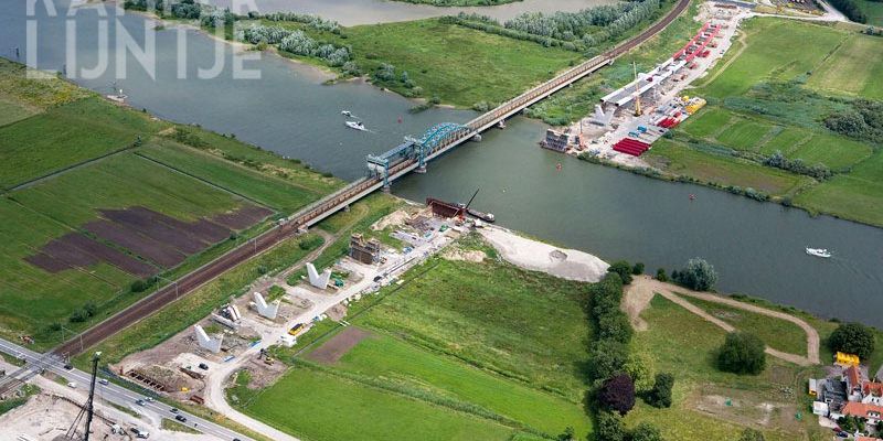 ‘De IJsselbrug slingert charmant doorhet landschap en vormt door de heldere rode kleur een markant oriëntatiepunt in de groene omgeving’.